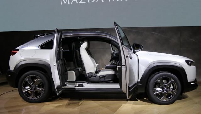 车身尺寸方面,新车的长宽高分别为4395/1795/1570mm,轴距为2655mm。值得一提的是马自达这款纯电SUV还采用了对开车门设计,因此取消了B柱设计,有点在致敬曾经的转子跑车RX-8的感觉。