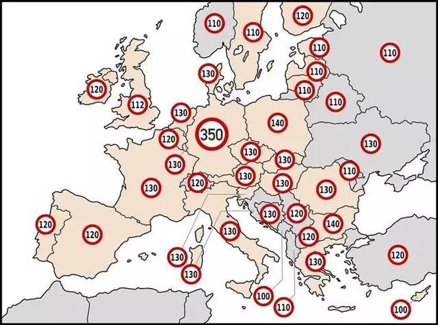欧洲主要国家高速最高限速(德国数据不实) 图片来源:Der Postillon