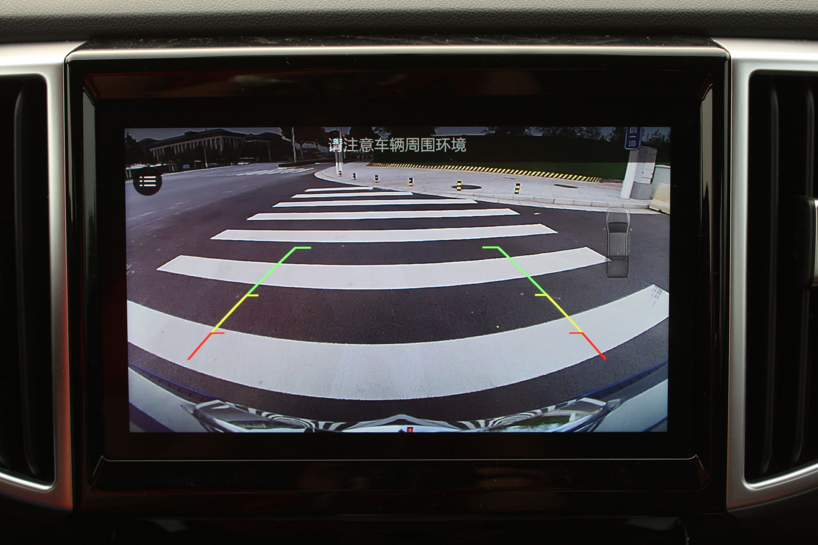 车内倒车影像自带广角,成像细腻清晰,对于皮卡长车身大盲区有一个很好的监测作用。