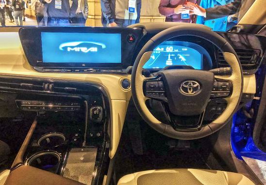 丰田Mirai的内饰简洁大方,多采用黑色和白色双色皮质包裹,提升了新车内饰的豪华氛围感。在中控台和仪表盘上配有8英寸数字组合仪表+12.3英寸多媒体系统,以及流媒体后视镜和14扬声器的JBL音响系统来突显科技感。