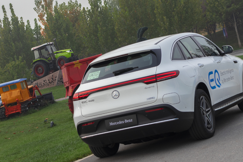 车尾方面,整体造型圆润饱满,贯穿式尾灯组与车头日间行车灯相呼应。EQC 400的尾标代表其动力级别;而右下方北京奔驰的标识,则表明其国产的身份。