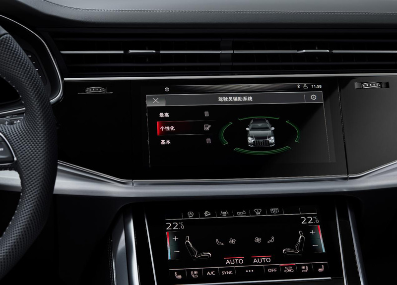 此外,奥迪全新MMI多媒体交互系统应用了集成式多功能触控屏,取代了绝大多数物理按键及旋钮,凭借中控台上下两块大尺寸触控屏实现了对多媒体及空调系统的控制,并且触控屏添加了触控反馈效果,也避免在屏幕上滑动时所造成的误操作。同时,全新奥迪Q8还装配了Audi connect 互联科技服务,标配个性化设置,使车主可以在个人资料中存储多达400个优先参数,例如,经常使用的媒体和导航目的地等。