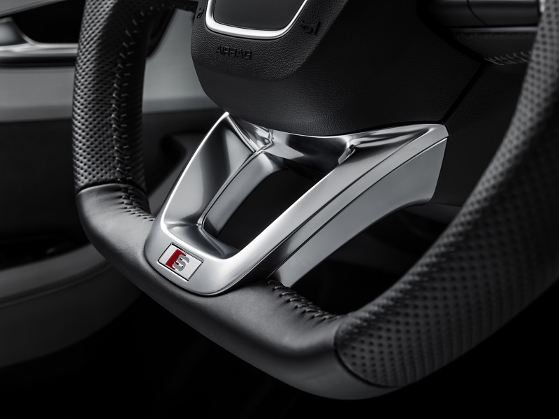 方向盘采用了S-Line套件设计,平底式的设计与整车的运动调性相得益彰,打孔真皮覆盖面积非常广,握持手感出色。在豪华的车厢内给到你一款跑车方向盘,让你在享受豪华气氛的同时可以享受驾驶的乐趣。