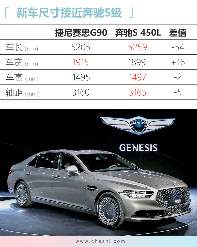 根据捷尼赛思美国、韩国官方网站的数据,G90的车身尺寸已经和奔驰S级非常接近。动力方面,该车海外版提供3.8L V6自然吸气、3.3T双涡轮增压和5.0L V8自然吸气发动机,传动系统匹配8速自动变速箱,预计入华车型将仅提供3.3T双涡轮增压动力版本。新款G90虽然有着D级车的定位,但根据品牌知名度以及现代集团旗下车型的定价策略,预计售价会与主流豪华C级车相近,凭借尺寸、设计以及配置与老牌豪华品牌竞争。