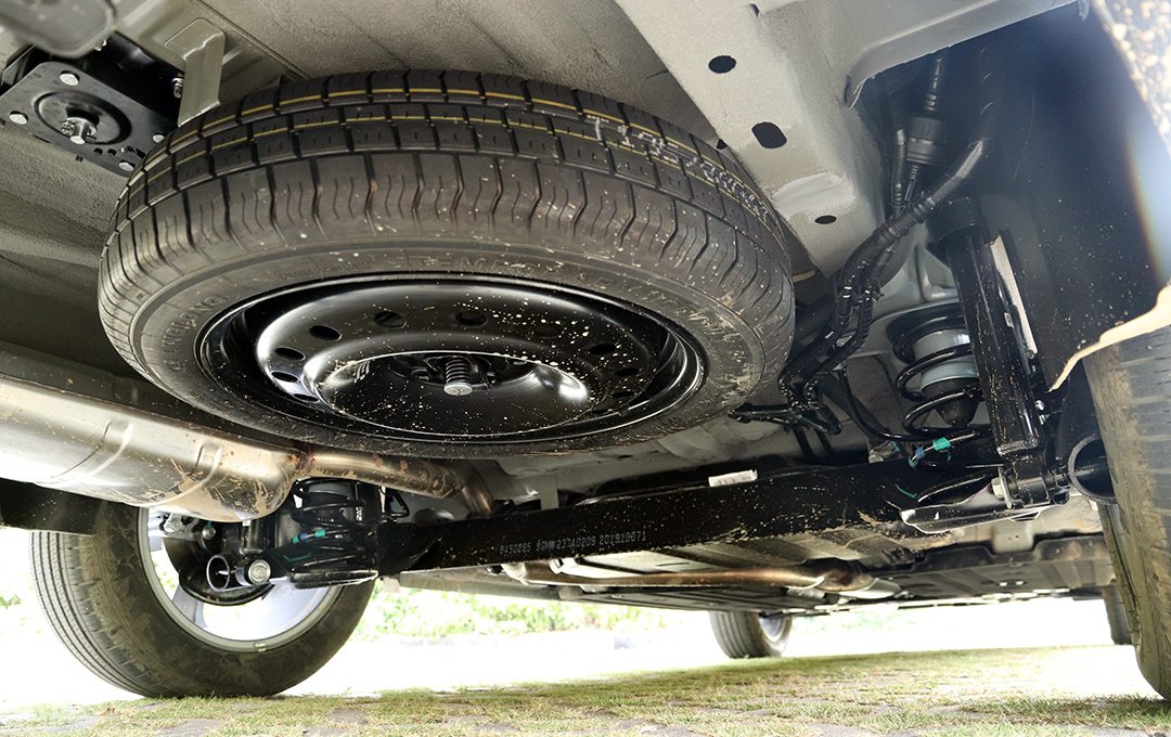 来到后备厢,新宝骏RM-5装载能力是毋庸置疑的,况且整个后备厢非常工整,即便是出行的时候也可以轻而易举地满足消费者的需求,打开盖板后下面还有一些储物空间和随车工具,备胎被放置到了车底部,这个设计也是对装载能力的扩充。