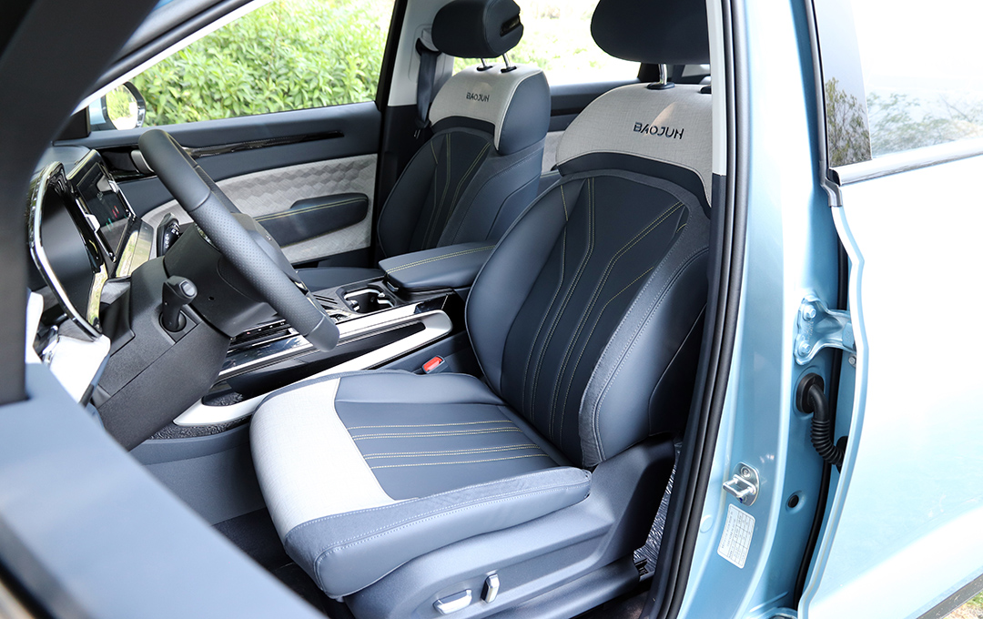 新宝骏RM-5的座椅设计和用料更多的是往舒适性方向倾斜,前排座椅方面,横向延展的头枕配合大尺寸侧翼带来更好的横向支撑和包裹感,加上皮质用料,长时间驾驶也不会感到疲劳,而且颜色的搭配也非常讨喜。