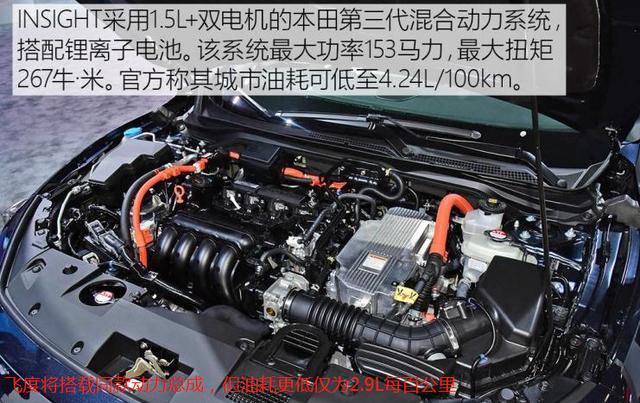 变化四:全新的动力总成,全新的第四代飞度将搭载全新的动力总成,分别为1.0T三缸发动机以及1.5L的i-mmd双电机混动系统,此外还有消息称国内版的飞度将继续延续1.5L自吸动力,也就是说国内版本或将推出三种不同动力的车型。其中1.0T以及1.5L混动是首次搭载到飞度之上,而1.5L混动则是首次进入中国。1.0T的参数想必大家也很熟悉,我们就不多说介绍了,而1.5L混动系统则非常陌生,这套动力系统最大功率153马力,最大扭矩267Nm,匹配的是7速双离合变速箱(之前该套系统匹配的是E-CVT变速箱),搭载到飞度之上油耗仅为2.9L(官方公布)。