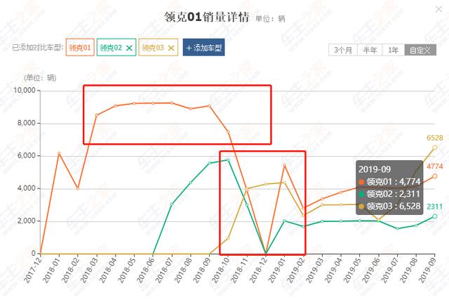 3年前,领克01出道即是巅峰,它被誉为"国产沃尔沃"、"国产保时捷",4S店甚至出现了加价提车的盛况,连续半年的销量都稳定在9000辆左右。继领克01后,领克乘胜追击,发布了领克02,销量同样一路高歌,连续增长了4个月,最高达到了5766辆。