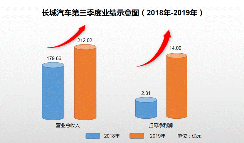 据长城汽车2019年前三季度的财报显示,这家自主品牌企业,第三季度实现营收超212亿元,同比增长18.01%,而前三季度整体营收更是达到625.78亿元。销量支撑营收数据,利润决定企业发展前景,前三季度,长城汽车归属于母公司股东的净利润超过29亿元,同比增长507%,营收两位数增长,利润的三位数增长,绝对是车圈内凤毛麟角的存在,这些数据让长城汽车再次成为汽车圈的“研究对象”。