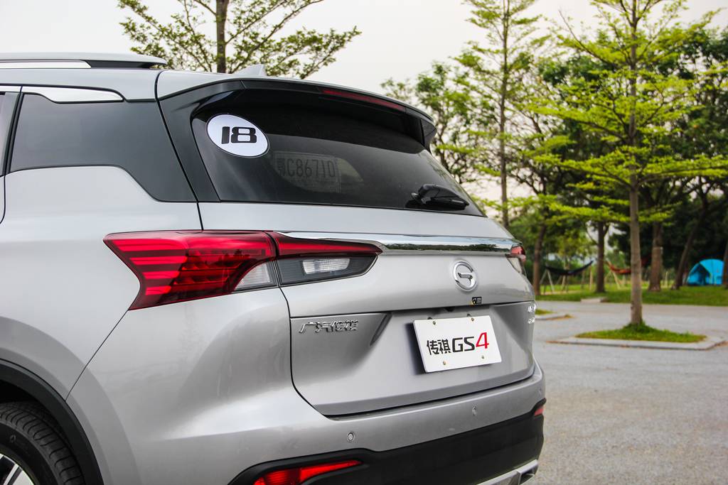 来到车尾,映入眼帘的就是这款辨识度相比上代车型更强的光翼贯穿式LED组合尾灯,再搭配整体尾部的造型设计,能感受到传祺GS4想表达的张弛有度的尾部设计理念。