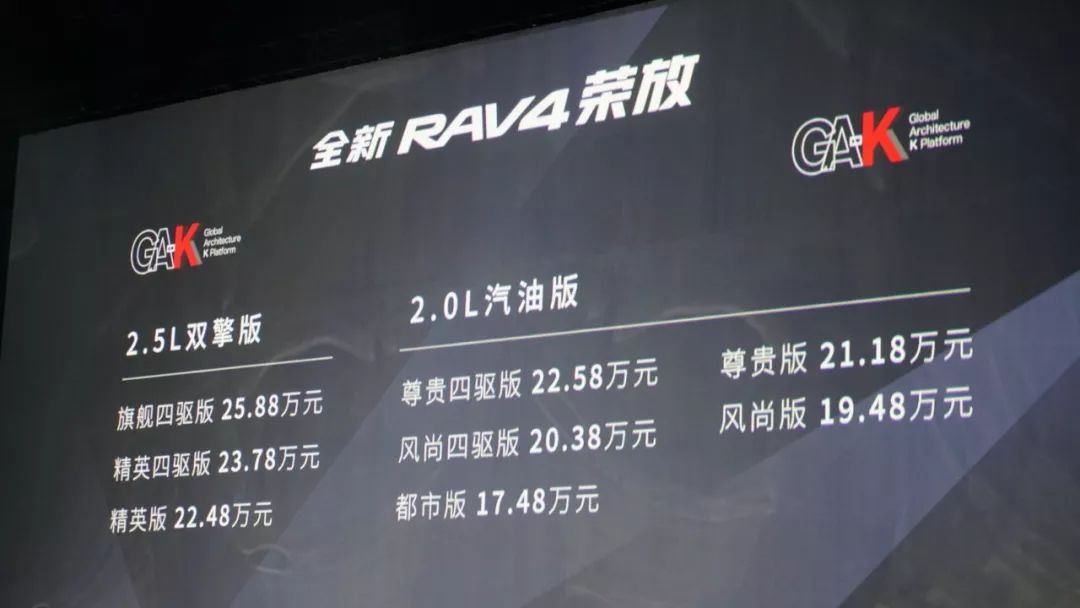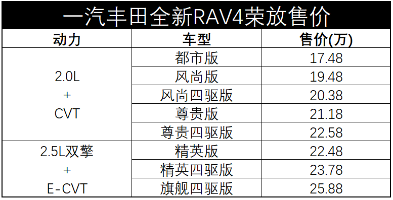 如上文所说,全新RAV4荣放售价17.48-25.88万元。