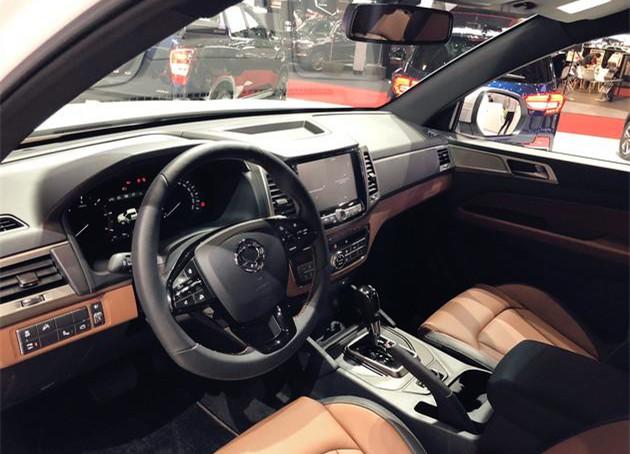 其次内饰方面,双龙Musso的设计更像是一台SUV,无论是配色、用料再到丰富的科技配置都向SUV看齐。而大面积的软性和真皮材质,则进一步提升了其档次感和豪华感。当你坐进车内的时候,你真的会觉得自己可能上了一辆城市SUV。