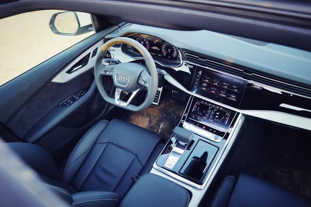 而且,全新奥迪Q8并不是空有其表,内饰部分更是惊艳到我。得益于大众集团顶级MLB evo平台,全新奥迪Q8有着与兰博基尼Urus (配置|询价)、宾利添越同宗同源的贵族基因。除了最夺目的三块液晶显示屏以外,车内我最喜欢的是带声学棱镜的Bang & Olufsen立体声音响系统。因为在我印象里穿越是很吵闹、很无聊的,但是全新奥迪Q8的Bang & Olufsen音响和双层玻璃,给予了我一个非常不错的驾乘体验。