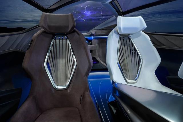 内饰部分以驾驶员为设计中心,采用最新的“Tazuna”(缰绳)设计理念,将屏幕功能与HUD抬头显示完美地结合在一起,让驾驶者更专注于驾驶;作为一款面向未来的纯电动车,LF-30采用下一代人机交互界面设计,包括AR行车信息显示和手势控制界面,提供了舒适便捷的驾乘空间;后排座椅更是采用了“人造肌肉”技术,可根据乘客的体型和体重自动调整;后排座椅上方的玻璃车顶配备语音控制功能,支持手势控制且可通过AR技术实现的SkyGate显示屏,带来多样化娱乐体验。