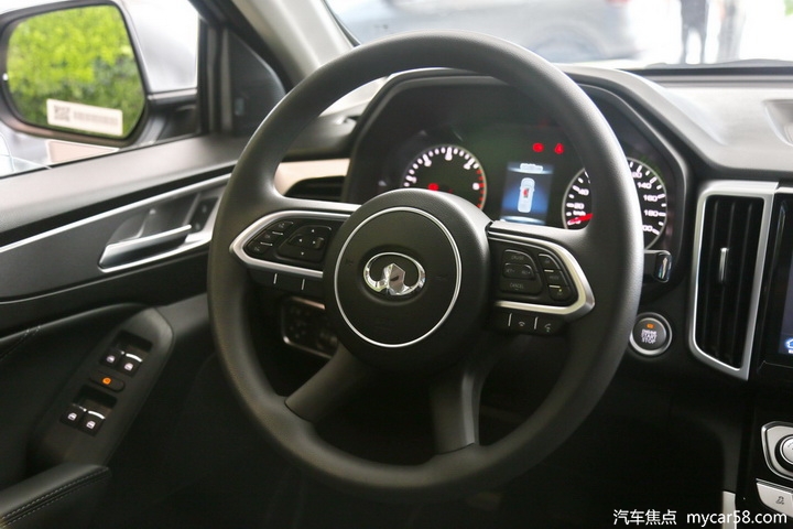 四幅式多功能方向盘采用皮革包裹,左侧为多媒体控制区域、右侧为定速巡航控制区域,配备液压转向助力系统。