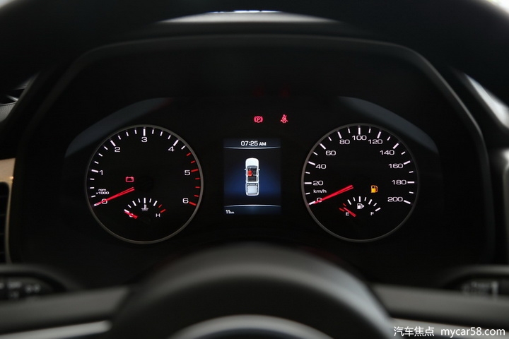 机械式仪表盘简洁清晰,所有数据一目了然,中间的行车电脑屏为3.5英寸彩屏,可显示里程、胎压、时间等数据。