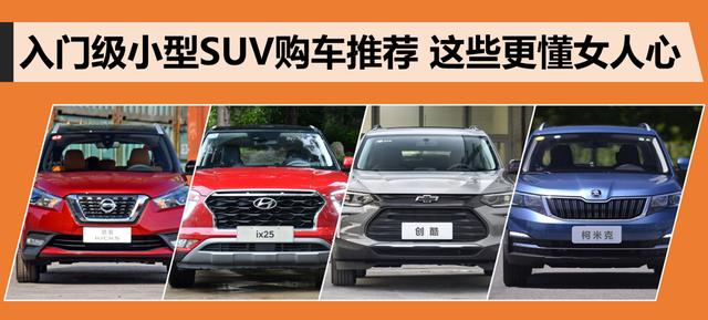 女性购车和男性购车的需求有很大重叠,好看、好开肯定要放在第一位。不过也有一个明显的差别,很多女车主在选车时都特别强调车一定要小,因为这样对于她们来说更容易操控、停车。今天推荐几款入门级的小型SUV,其中绝对会有女性车主的菜,它们分别是来自东风日产的劲客 (配置|询价)、即将上市的新款现代ix25、上汽通用雪佛兰创酷 (配置|询价)以及上汽斯柯达柯米克 (配置|询价)。