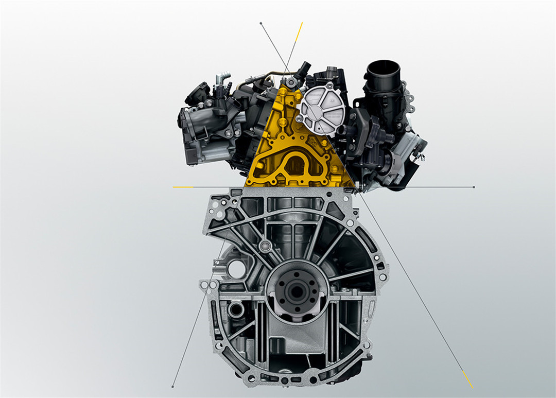 这款1.3T引擎采用了诸多新技术,其中最值得一提的是采用了三角形缸盖设计,这就让这台引擎的气缸头的体积非常小,节省出了非常多空间用以布局进排气系统、油路等管道和线束,从而方便了维护和检修,也有利于引擎位置的布置。