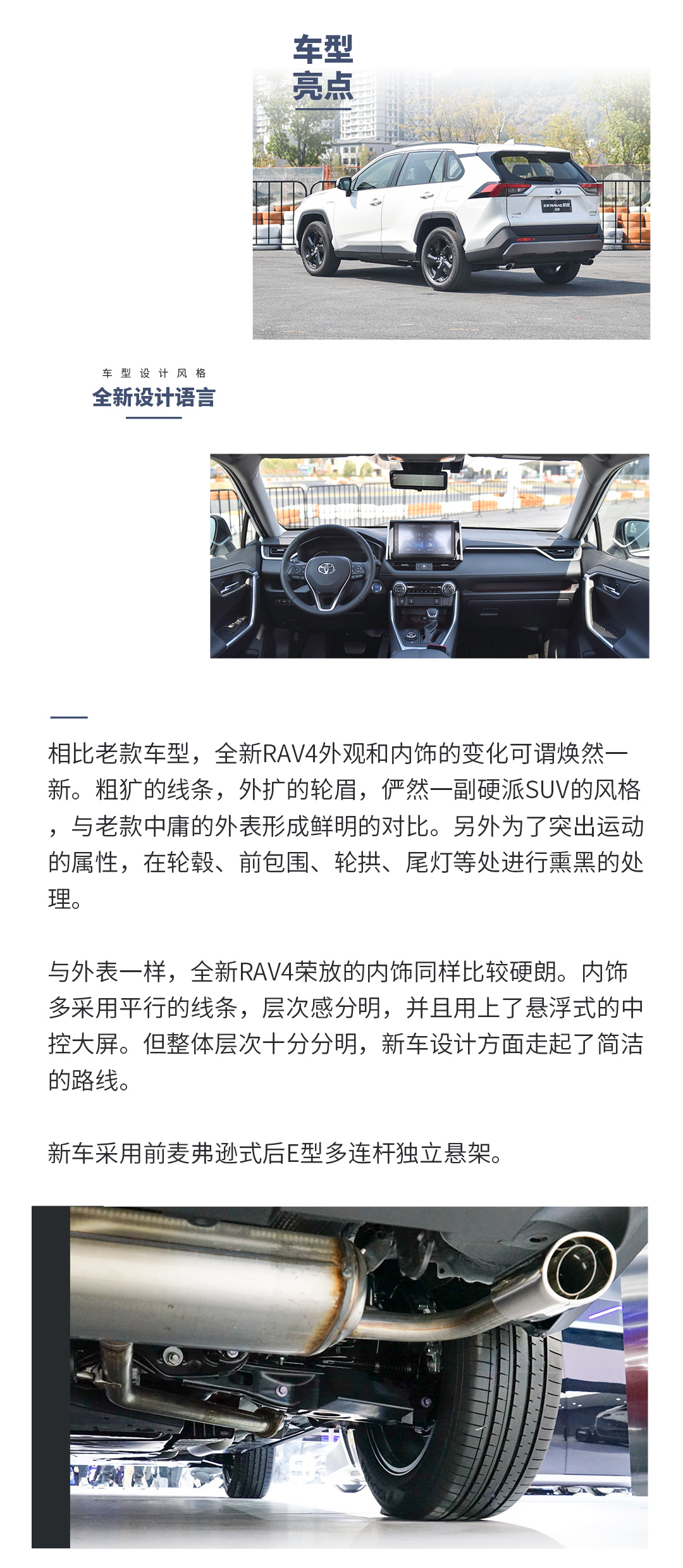 全新RAV4除了采用全新的平台外,在外观和内饰上也进行了全新的设计,并且配置也进行了较大的升级,使其更加符合年轻人的胃口。