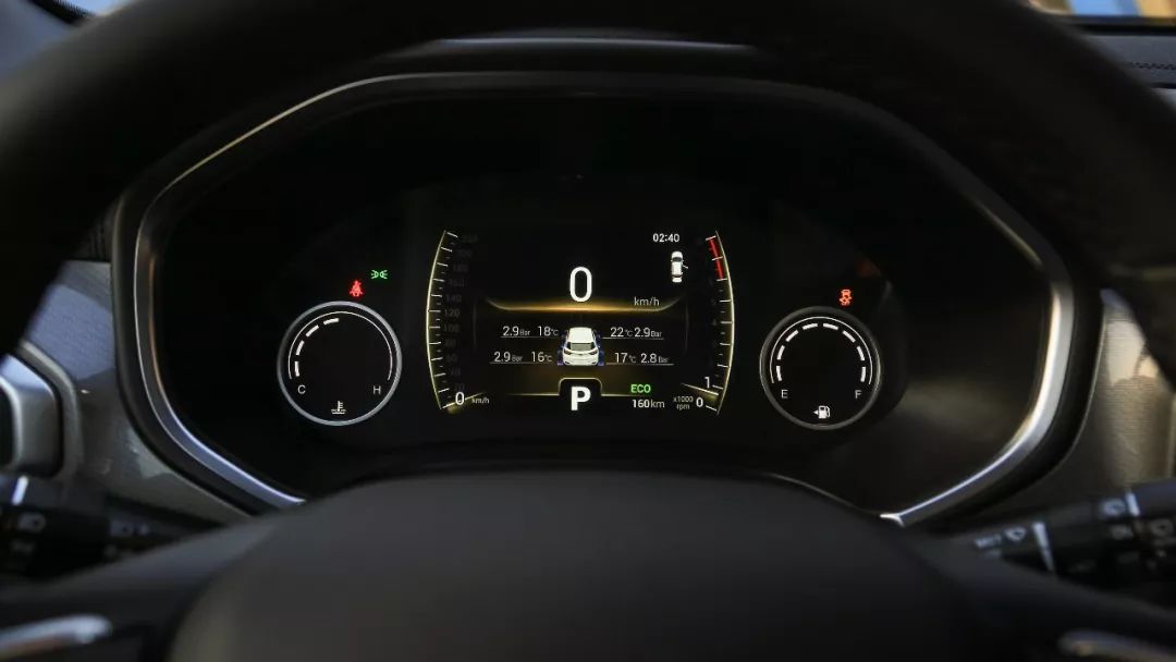 7英寸的液晶仪表能够提升科技感和档次感,仪表信息简单清晰,并带有胎压数据显示。