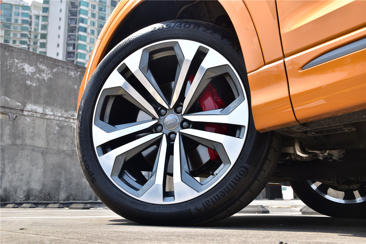 厚重的车前机盖搭配上坚实有力隆起的后翼子板,从Q8的斜后方看上去,竟然有了一丝宾利添越的感觉。