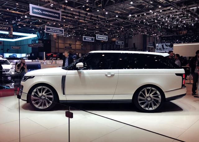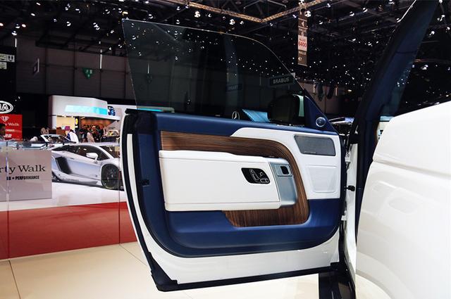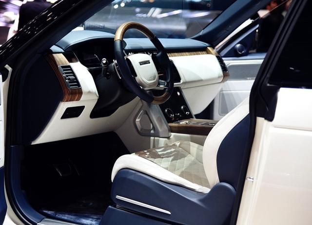 首先外观方面,这台揽胜SV Coupe的前脸设计与中期改款揽胜整体造型上并没有太大差别,但细节方面的变化还是有的,比如进行格栅外围加入了一圈银色饰板,下保险杠黑色面积更大,运动感更强等等,总体而言新车要比普通版更加豪华大气。