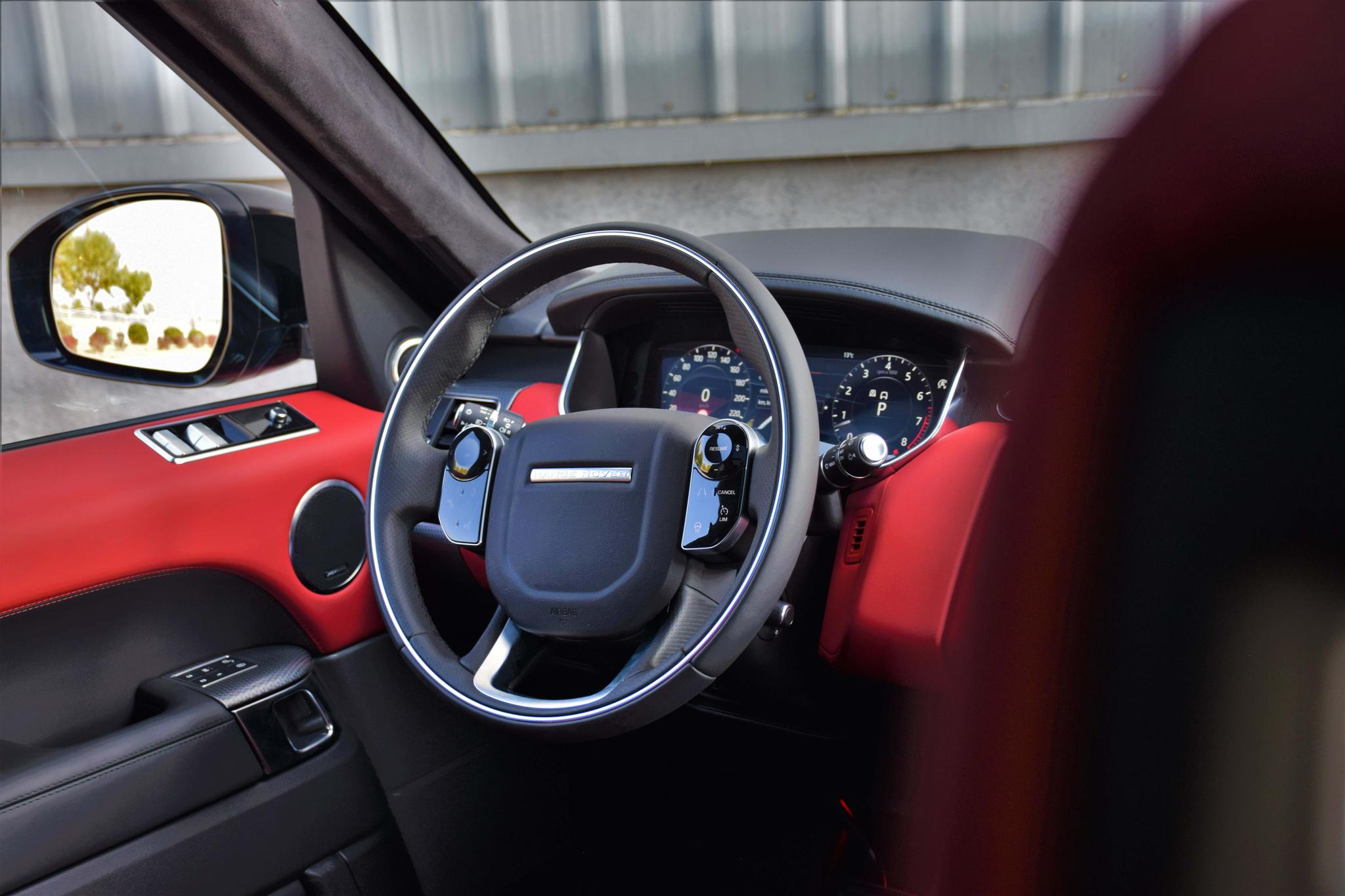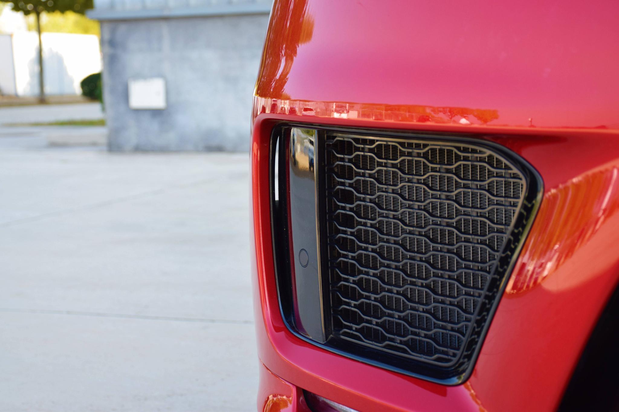 看到车子的第一眼,依旧是路虎揽胜霸气外露的庞大车身,不过拿到手的这款Dynamic HSE版本的车型为红车黑顶,更进一步突出了揽胜运动版的定位,运动范儿十足。
