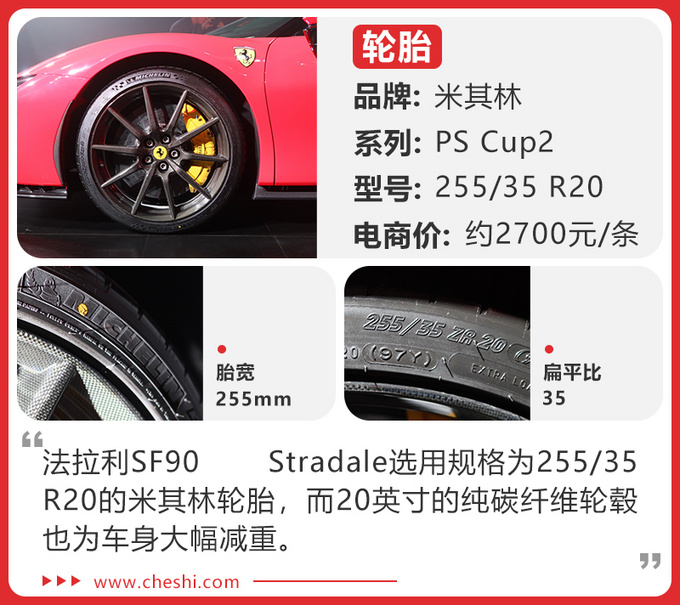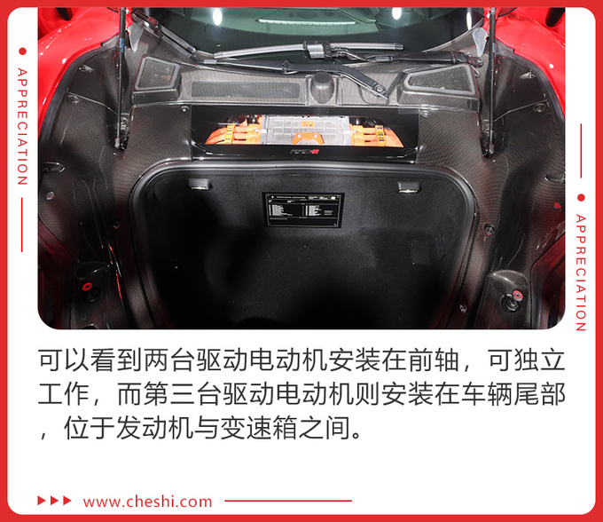 关注这台车的人都已经知道它的动力参数是如何强大,这也是法拉利车型的重要核心,法拉利SF90 Stradale搭载90°涡轮增压V8发动机与三电机组成的插电式混合动力系统,内燃机可输出780匹的马力与800N·m的扭矩,电机组独立输出220匹的马力,电池组容量7.9kWh;纯电力驱动可行驶25km。纯电动驱动前桥与 RAC-e (电子转向设置调整) 协同工作,不仅能让SF90 Stradale共享来自前轴的动力输出,完全集成到车辆整体动态控制的 RAC-e 还能独立控制负责驱动前轮那两个电机的扭矩输出,从而实现四轮扭矩矢量分配的精准控制,大幅提升车辆的弯道表现。