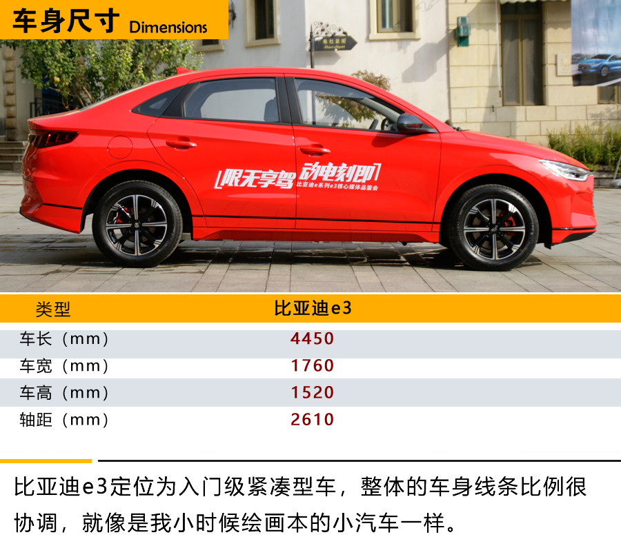 动力方面,比亚迪e3搭载最大功率为70kW和100kW的永磁同步电机,最大扭矩180N·m。新车配备三元锂电池,NEDC续航里程分别为305km和405km。