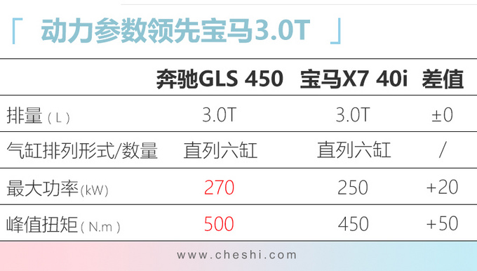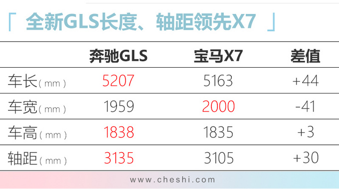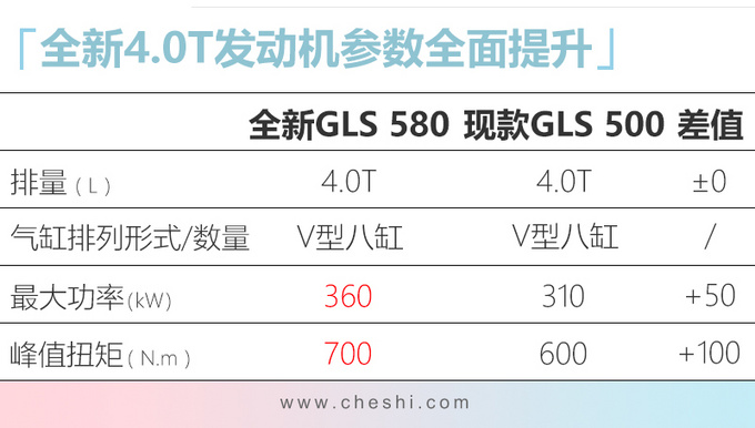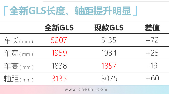奔驰全新一代GLS长度增加77mm达到5207mm,轴距增加66mm达到3135mm,整体尺寸仍然领先宝马X7 (配置|询价),第三排乘客的乘坐舒适性得到了提升。动力方面,全新一代GLS搭载3.0T L6和4.0T V8两款发动机,同时48V电机还会在起步、急加速时短暂提供额外动力,最大功率为16kW,扭矩为250N.m。传动系统全系匹配9速自动变速箱,并标配4MATIC四驱系统。