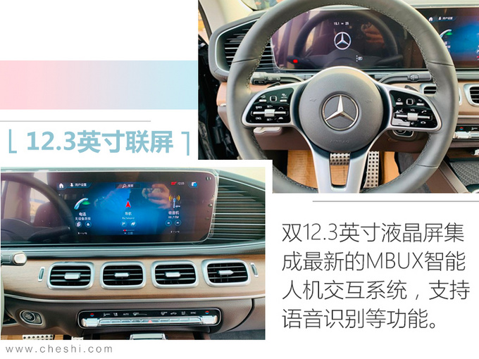 车内的变化可谓翻天覆地,全新一代GLS设计风格与GLE (配置|询价)保持一致,双12.3英寸液晶屏集成最新的MBUX智能人机交互系统,内容丰富的HUD抬头显示,彰显了新车在科技配置上的全面升级。除了焕然一新的中控布局,豪华舒适的后排也是新GLS车内一大亮点,轴距加长为后排带来更充裕的乘坐空间,同时第二排增加的11.6英寸娱乐显示屏,第三排配备单独温区自动空调。