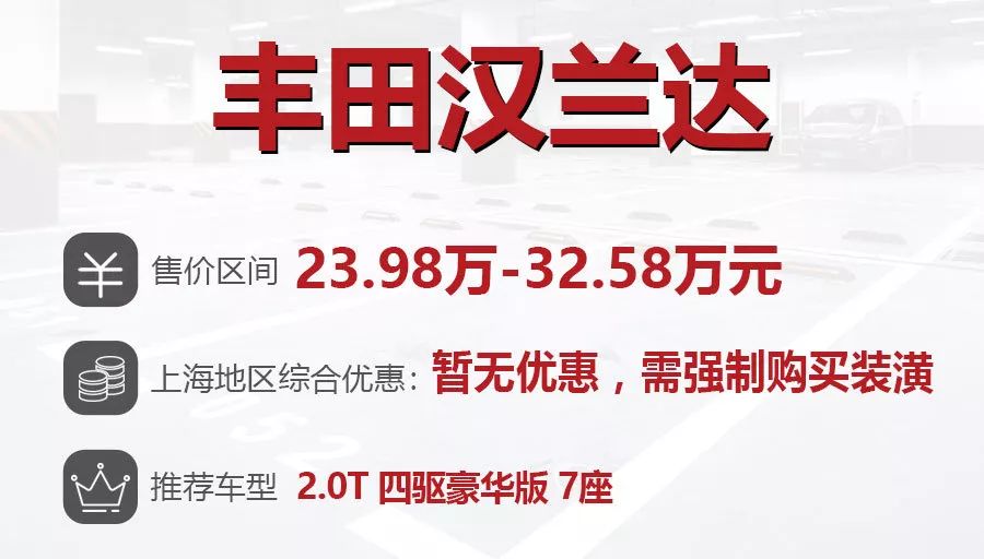 通过小智实地前往上海广汽丰田4S店以及论坛车主的实际反馈来看。上海地区的汉兰达 (配置|询价)新车目前无现金优惠,而有4S店表示购车需要加价1.2万元。同时也有部分4S店表示需要购买2万元装潢,装潢内容包含车辆贴膜,脚垫以及香水。等车时间根据车型配置不同,平均在一个月左右。