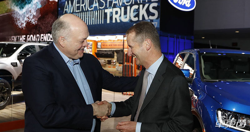 ▲大众集团CEO迪斯博士(右)与福特CEO韩恺特(左)