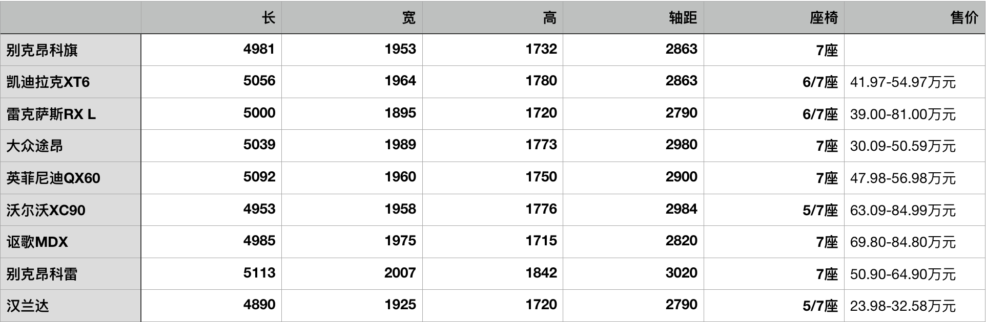 加上价格因素的参考,昂科旗比XT6、QX60、途昂 (配置|询价)都要小一圈,只是比雷克萨斯RX L强一些,所以并没有XT6一发布时给人尺寸优势明显的感觉。而且作为XT6的“小弟”,与最便宜的大众途昂相比,不仅尺寸上不占优势,而且现在推出的昂科旗比途昂已经晚了三年,途昂背靠大众在国内的品牌效应,今年的月均销量依然可以超过5000辆,似乎给人为时已晚的感觉。