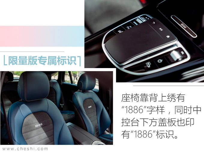 内饰方面,奔驰EQC配备标志性的双10.25英寸显示屏和带有双拇指控制系统的方向盘,同时加入氛围灯进行点缀。此外,EQC 1886限量版座椅靠背上绣有“1886”字样,同时中控台下方盖板也印有“1886”标识。