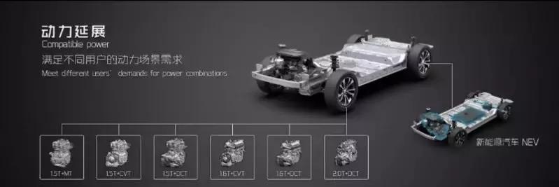 另外,在动力延展层面,可兼容1.5T、1.6T、2.0T等传统燃油动力,最大扭矩可以跨越230牛·米-380牛·米。并且,还可兼容48V轻混、PHEV、HEV等新能源动力单元。在未来,R平台将重点搭载CVT/DCT系列的变速箱,满足用户对动力搭配的多样化需求。
