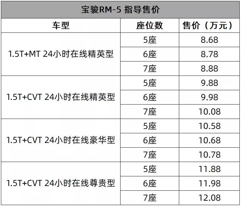 8.68-12.08万元的售价区间,跟以往的宝骏比,一样的性价比,但品质完全提升了一个层次。如果你追求实用、好用、耐用的MPV、SUV、轿车车型,新宝骏RM-5都可以成为这个价位区间里面非常值得你考虑的车型之一。
