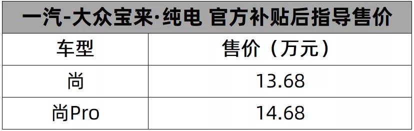 ▶一汽-大众宝来·纯电上市,售13.68-14.68万元