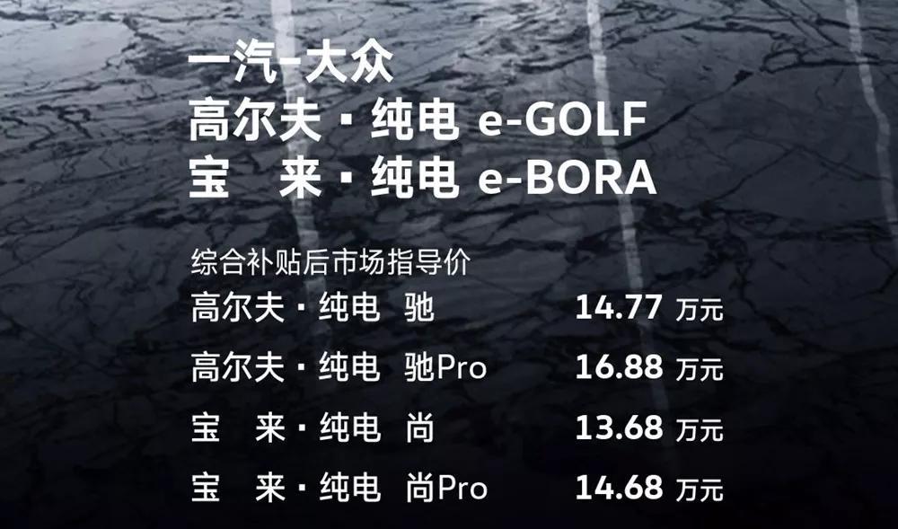 10月29日,一汽-大众高尔夫·纯电和宝来·纯电车型正式上市,其中高尔夫·纯电综合补贴后售价为14.77-16.88万元;宝来·纯电综合补贴后售价为13.68-14.68万元。