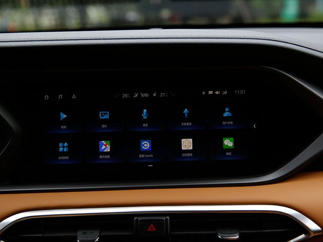 12.3英寸中控彩色大屏里的信息比较全面,有视频、图片、应用商店、腾讯地图、高德地图、百度CarLife、系统更新、微信、车辆设置等等。