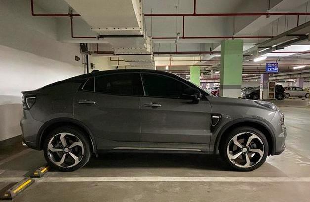 车身侧面,全新吉利领克05弱化了很多SUV的特征,增加轿跑的感觉,无论是横向很是纵向,车身比例都很协调。
