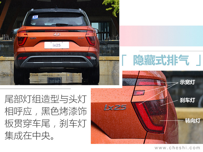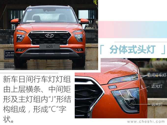 外观方面,新一代ix25前格栅与新途胜、胜达相似度极高,两侧并配备了分体式头灯组,日间行车灯则由三个部分组成。车身侧面线条平缓,B、C柱位置由灰色、银色涂料进行涂装,营造出悬浮式车顶效果。尾部灯组同样采用分体式设计,中间部分采用亮黑色饰条和灯带与两侧贯穿相连。