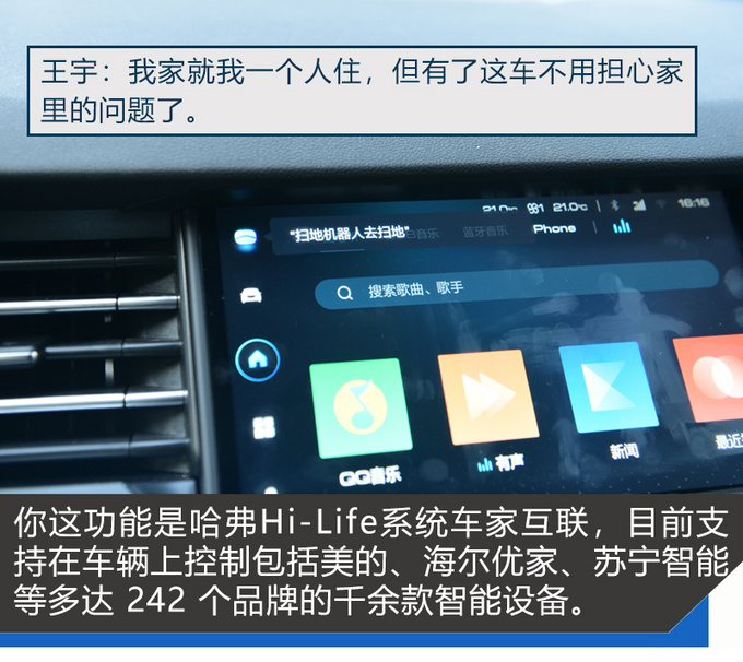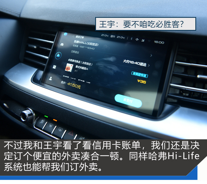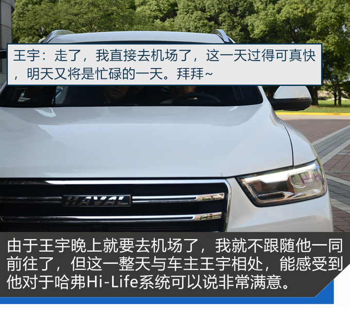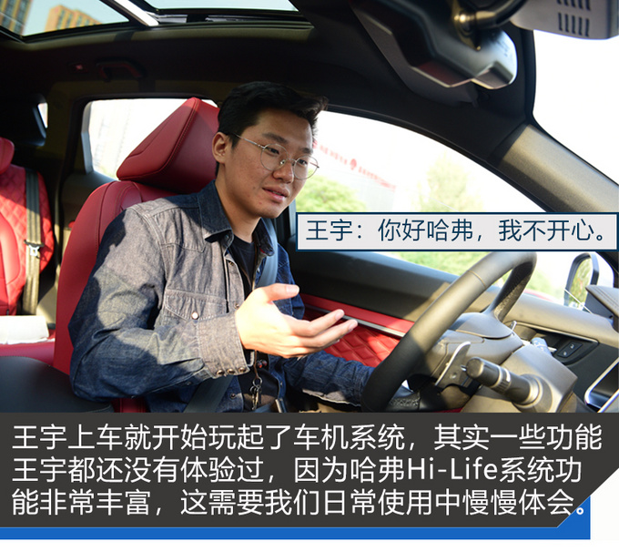 经过这一整天与全新哈弗H6的相处,虽然王宇在有些功能上的使用上还不是很熟练,但我认为他已经对全新哈弗H6非常满意了,看他与哈弗Hi-Life系统开玩笑的开心状态,我觉得这次推荐是值得的。而这套智能网联车机系统也确实做到了功能丰富且强大。几乎涵盖了一个人日常所碰到的绝大部分场景。而我们最终除了点外卖扫码缴费以外,再也没有拿出过手机,真真实实的替代了手机在车内的使用场景,其实这也是对行车安全的一种极大提升,我和王宇都认为全新哈弗H6绝对是同级别中功能丰富度最高的车型。从另一方面讲Hi-Life系统也引领了“智能网联新时代”,为车辆智能网联系统竖立了新的高度。