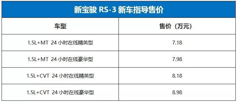 在动力方面,新宝骏RS-3先期搭载1.5L自然吸气发动机,并有两种不同的调校,其手动挡车型的最大功率为99马力,峰值扭矩为143牛·米,传动系统,匹配6MT;CVT版车型的最大功率为105马力,峰值扭矩为135牛·米,传动系统,匹配CVT(模拟8挡)变速箱。后期新宝骏RS-3还将会推出搭载1.2T发动机的车型。如果你对这款车感兴趣,又不知道怎么选的话,请继续往下看。