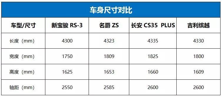 新宝骏RS-3虽然是一辆不折不扣的小型SUV,但其长宽高分别为4300/1750/1625 mm,轴距达到了2550mm,从数据的表现上看,跟同级别的长安CS35 PLUS (配置|询价)、吉利缤越 (配置|询价)差不太多,这个车身尺寸可以应对绝大多数日常用车情况,即使是身高180cm的车叔坐进去,也依然不会拥挤。