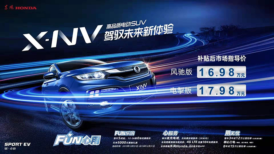 在国内大趋势影响下,新能源汽车成为主要发展对象。此次,由东风本田和本田技研科技(中国)有限公司联合开发的第一款纯电动车X-NV正式上市,新车在品质、空间、安全、驾驭和智能等方面,为消费者带来更具有品质保障的纯电新体验。新车共推出2个版本,补贴后售价分别为16.98万元和17.98万元。