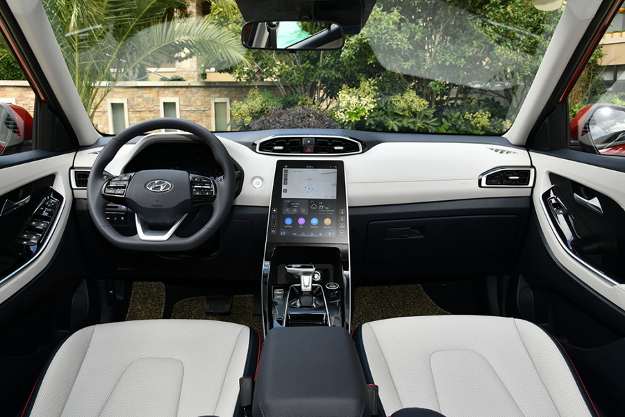 外形上,新一代ix25采用了现代最新的家族式设计语言,其整体风格更趋时尚、动感。新一代ix25前脸设计与全新胜达 (配置|询价)较为相似,网状进气格栅周围运用镀铬元素修饰,配合分体式LED前大灯,其整个前脸极具视觉冲击力;新车侧面采用双色车身设计,搭配溜背式造型设计,使其看起来非常年轻、时尚;车尾两边不规则尾灯组中间部分由一根发光带贯穿,下包围和前脸一样均采用了银色护板,同时也提升了其视觉高度。值得一提的是,新车提供了极地白、流沙金、水鸭蓝、热情红、烈焰橙、热情红曜石黑以及烈焰橙曜石黑等多种配色。