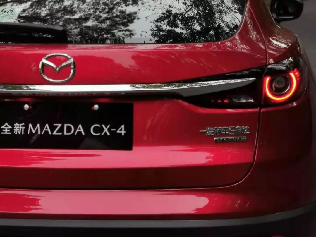 内饰部分,新款 CX-4 希望透过简洁设计和高度协调的质感创造出高级豪华的形象。仪表上半统一使用黑色,下半部则和座椅颜色统一,皆为深红色或新导入的勃根地红。Two-tone 双色调的轻快组合,搭配全新设计以皮革材质包覆的人体工学座椅,让乘坐感受与舒适气氛都获得进一步提升。马自达新世代内饰颜色主题勃根地红,搭配升级后的晶艷魂动红,享受外在强烈视觉刺激的同时,也能让人在车内感到宁静、平和。