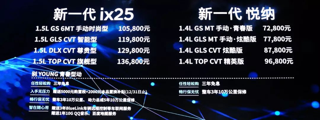 10月30日,新一代ix25和新款悦纳在北京现代重庆工厂正式上市,两款新车指导价区间分别为10.58-13.68万和7.28-9.68万。相比老款车型,两款新车在内外均进行了与时俱进的调整。详细价格请见下表: