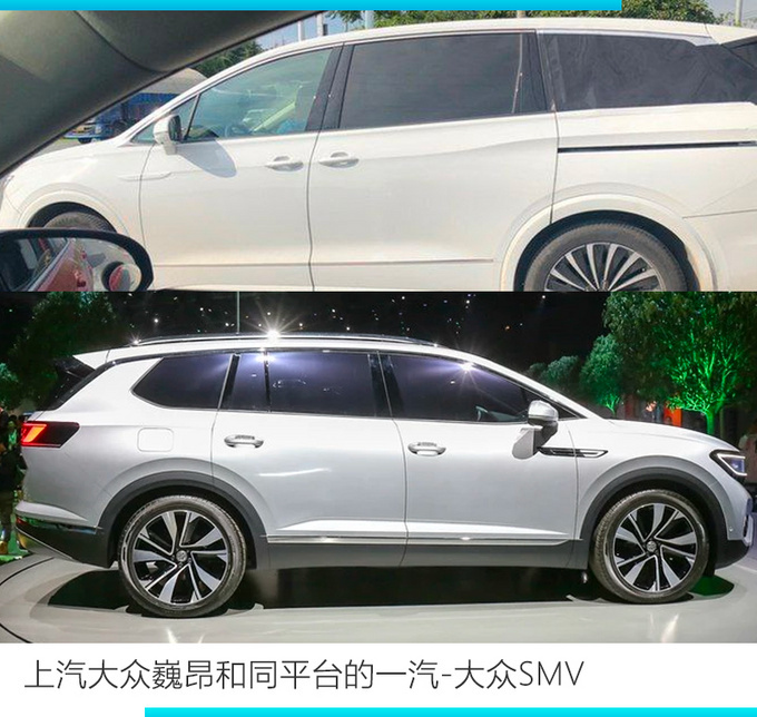 上汽大众巍昂基于MQB-B平台打造,车身尺寸超过5.1米,与之相对应的一汽-大众SMV则是一款SUV车型,不过两款车造型相似度极高。外观方面,新车前脸为大尺寸横幅式格栅,两侧配有全LED大灯组。车身侧面腰线从前翼子板延伸至尾灯组,后车窗进行了窄口处理,营造出不错的视觉效果。
